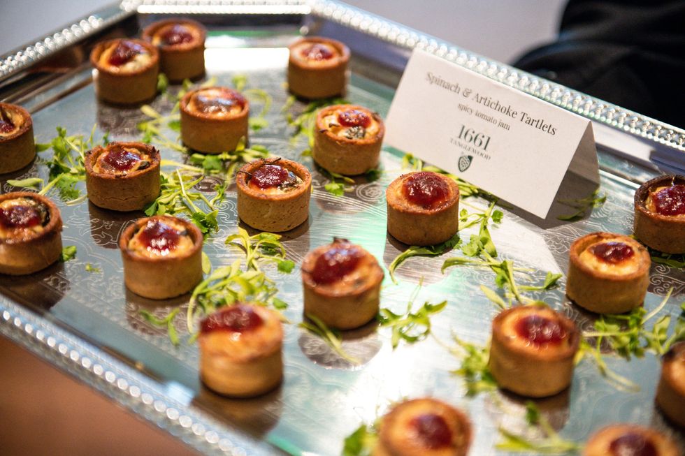 A La Carte catering sent around a lovely menu of treats — including the likes of spinach and artichoke tartlets with spicy tomato jam, truffled mac & cheese spoons with buttered breadcrumbs, and a luscious lemon tart for dessert. Guests washed it down with A La Carte’s “Tanglewood Spring” cocktail, with gin, fresh basil and pineapple juice.