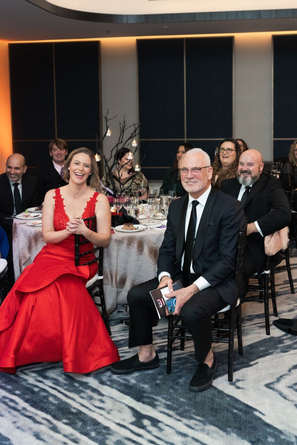 There wasn’t a dry eye in the ballroom as a video played telling the story of five-year-old dog Burrito, who six months ago was found abandoned in an apartment in Indiana. The team drove to get Burrito and discovered he was too overweight to even walk. Nursed back to health in Houston, the lights came on in the ballroom and Burrito ran in to shower Friends for Life founder Salise Shuttlesworth with slobbery kisses. (And he’s still looking for a home!)